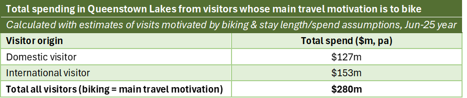 • How much money is spent in Queenstown Lakes by people attracted to the area for biking?