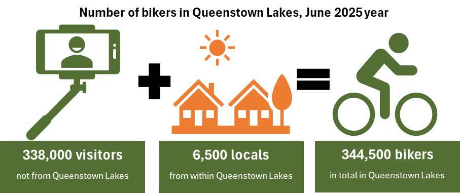 • An estimated 344,500 people biked in Queenstown Lakes in the June 2025 year, up almost 90% over the past four years.